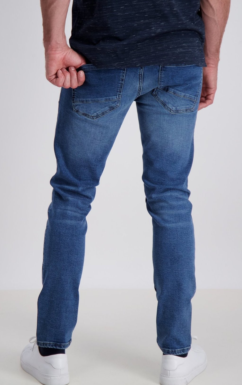 Jeansen 3-00026MED från Jacks är superstretchiga jeans i mellansmal passform som smalnar in något får knät och ned utan att bli allt för tight. Lagom mycket tvätteffekt och vardagligare framtoning där de bruna sömmarna förstärker det intrycket. Ganska klassisk blådenim-färg.