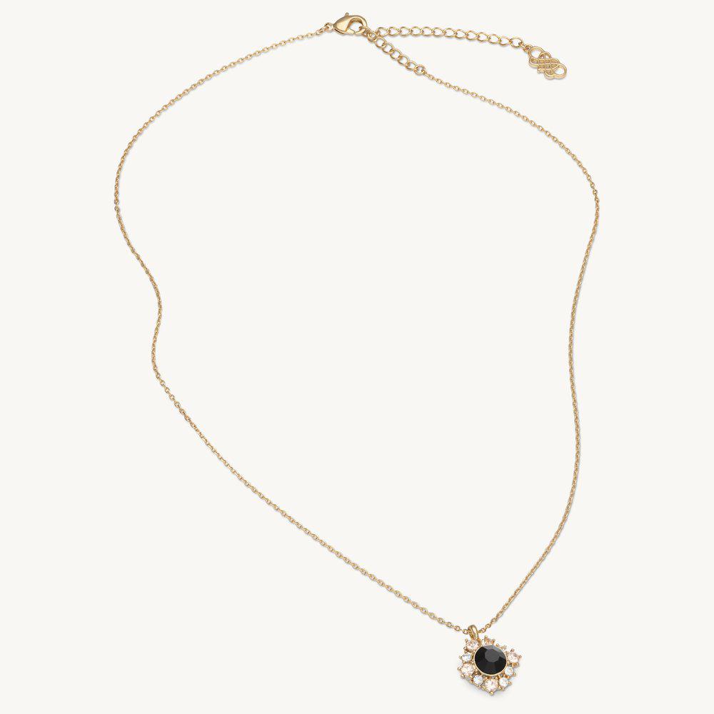 Glowing with light, our Emily necklace takes an alluring jet black crystal and creates a gorgeous assemblage, using smaller mystical opal and clear crystals. Set in gold. Complete your look with other items from our Emily collection.